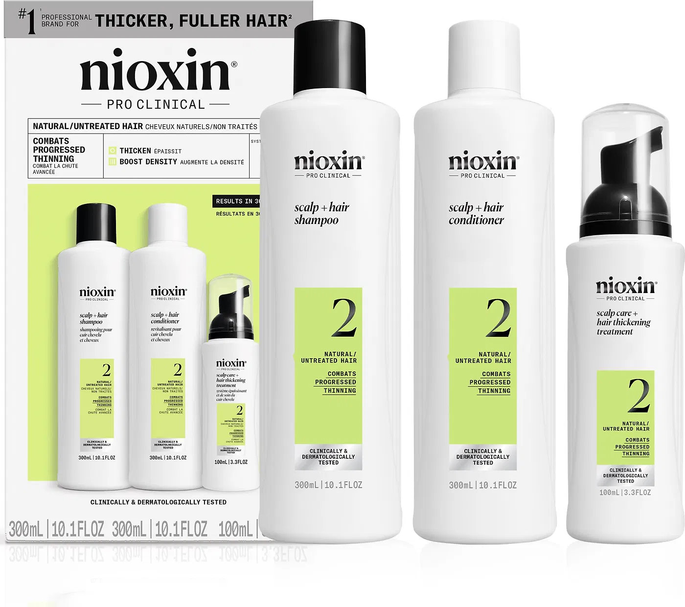 Pro dosažení maximálního účinku je třeba systém Nioxin používat kompletně, tedy všechny tři jeho části (šampon, revitalizér a ošetření). Užíváním kompletního třífázového systému dosáhnete 5 efektů pro silný a hustý vzhled vlasů.