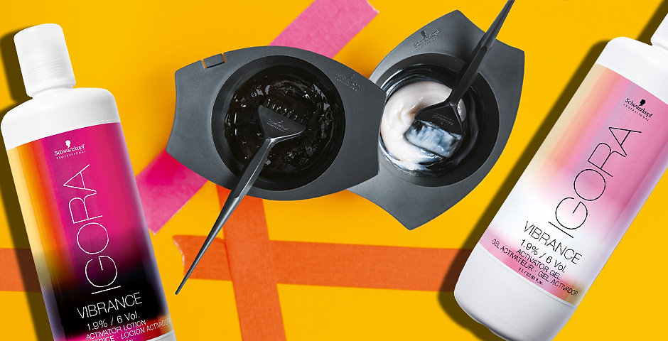 Vyvíječ smíchejte s barvou Igora Vibrance Colors v poměru 1:1 a ihned aplikujte na vlasy.