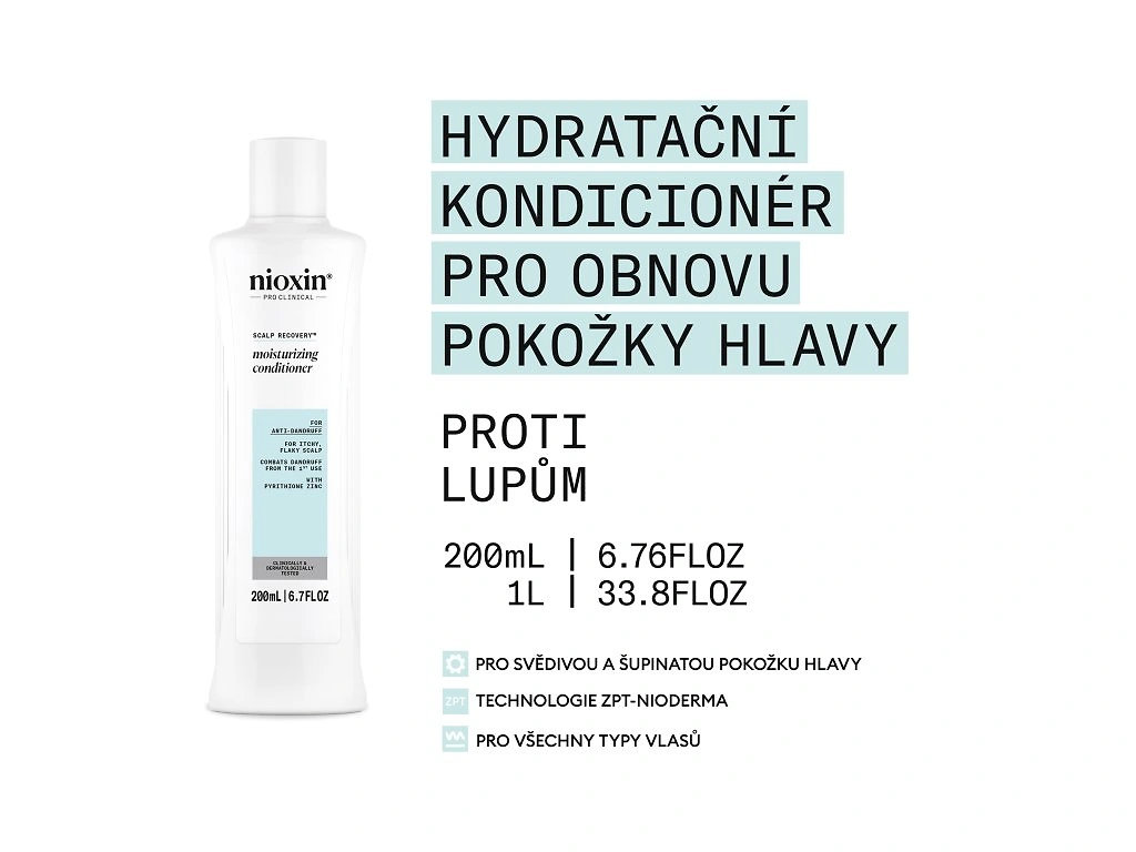 Poznámka: řada Scalp Recovery je 3fázový systém, kondicionér je tedy nutné užívat společně s šamponem Nioxin Scalp Recovery Purifying Cleanser a bezoplachovým sérem Nioxin Scalp Recovery Soothing Serum