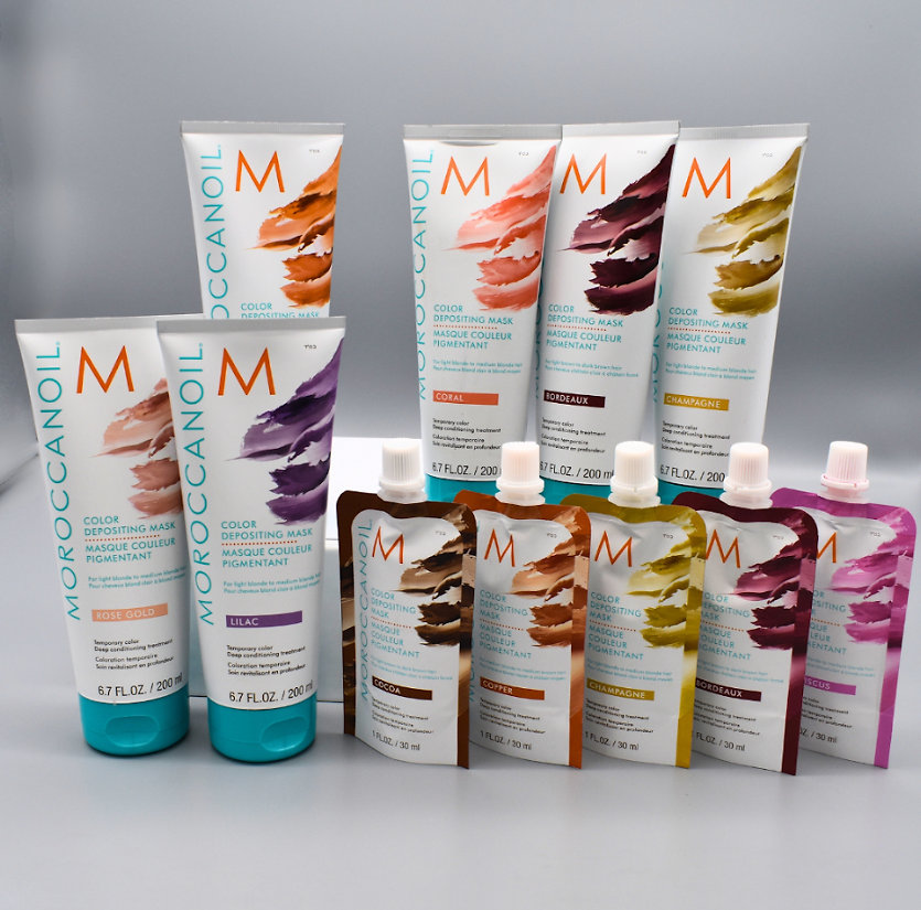 Poznámka:Chcete-li dosáhnout pastelového efektu nebo zjemnit výsledek barvy, smíchejte 1/4 dílu masky Color Depositing se 3/4 díly masky MoroccanOil Weightless Hydrating Mask.