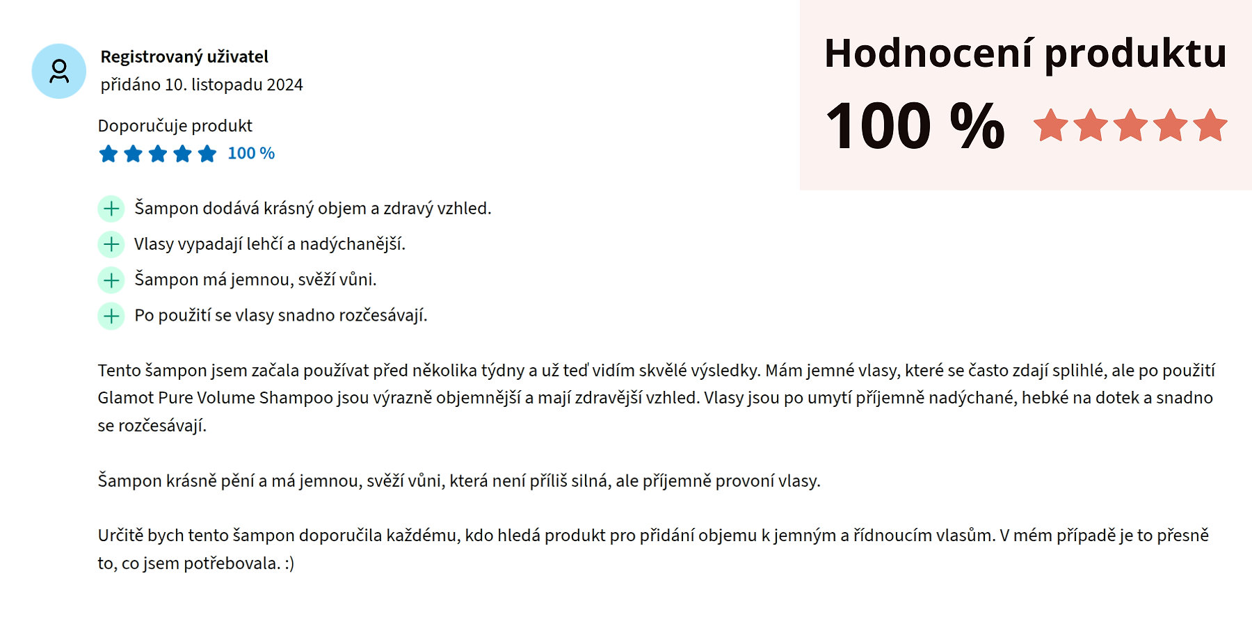| Účinek: | Objem, Lesk, Zklidnění, Hydratace, Výživa |