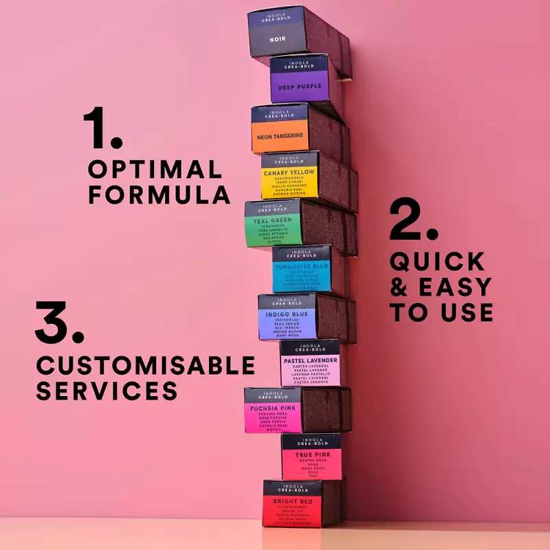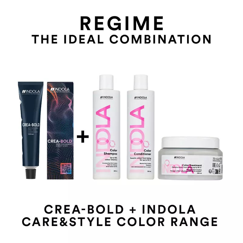 Pro vytvoření vlastní barvy smíchejte mix tóny Crea-Mix (0.11, 0.22, 0.44, 0.66, 0.99) podle požadovaného výsledku. Tato barva pomáhá zesílit tónování permanentní barvy PCC, vytvářet nové, na míru šité výsledky nebo bojovat proti nežádoucím teplým podtónům. Použijte s Indola Color Transformer pro dosažení chladných nebo živých barevných výsledků.