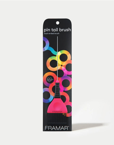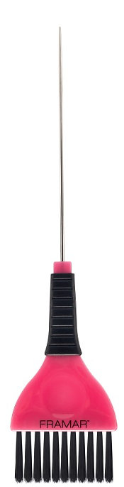 Framar Pin Tail Brush je profesionální dvoufukční štětec pro aplikaci vlasové barvy, který kombinuje klasický štětec s tenkým kovovým pin-tail hrotem. Tento nástroj je ideální pro přesné sekcionování vlasů, vytváření jemných linií a rovnoměrné nanášení barvy, ať už pracuješ s highlights, babylights nebo retušemi kořínků.