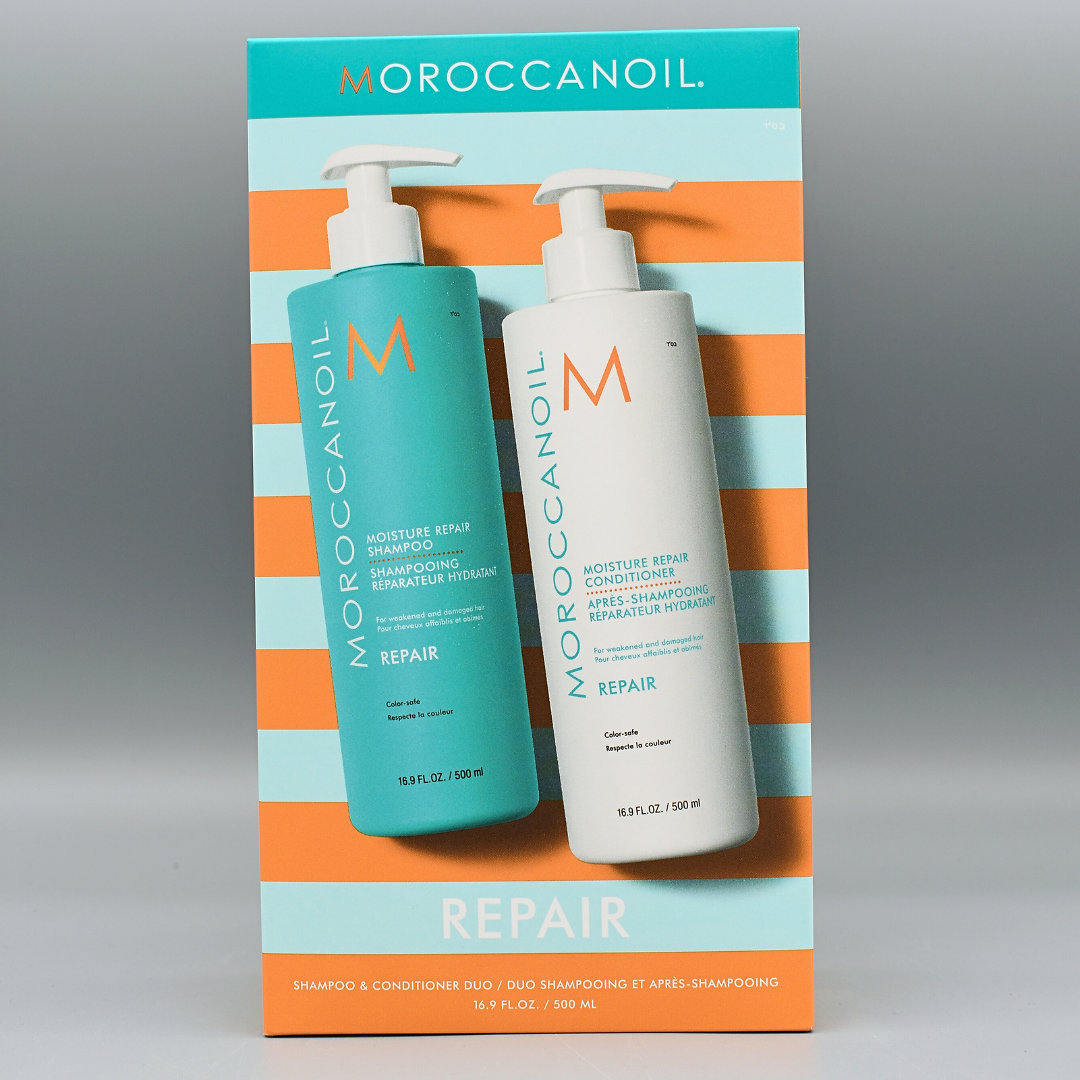 Moroccanoil Moisture Repair Shampoo & Conditioner Duo je pečující dvojice navržená pro obnovu a posílení vlasů poškozených barvením, chemickým ošetřením nebo tepelným stylingem. Šampon vlasy šetrně myje a zároveň pomáhá obnovovat hydrataci i pružnost, zatímco kondicionér usnadňuje rozčesávání a zanechává vlasy hebké, lesklé a lépe ovladatelné.